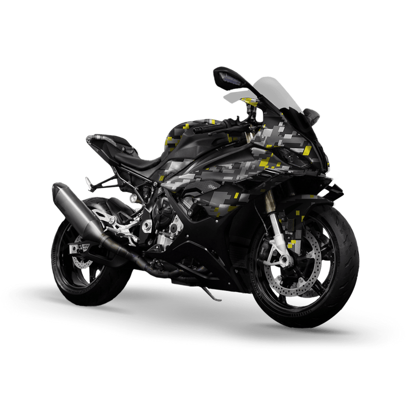 Give your bike a cutting-edge tactical look with Digital Urban Yellow Sports Bike Wrap. Modeled after military digital camouflage, this pattern uses pixelated blocks of varying sizes and colors to create a sharp, modern style. Perfect for riders who want their sport bike to project speed, precision, and a battle-ready edge.