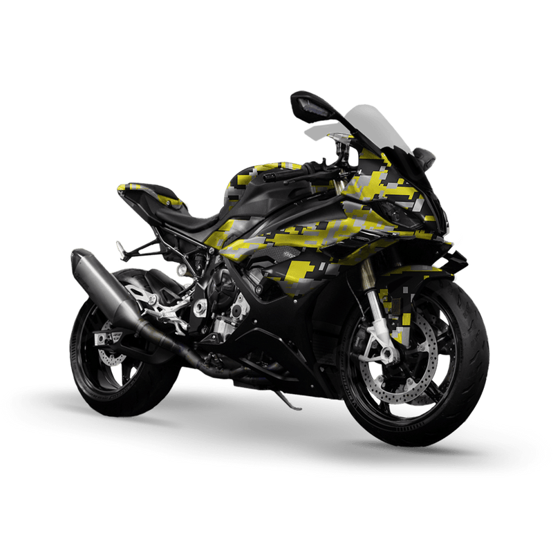 Give your bike a cutting-edge tactical look with Digital Yellow Tiger Sports Bike Wrap. Modeled after military digital camouflage, this pattern uses pixelated blocks of varying sizes and colors to create a sharp, modern style. Perfect for riders who want their sport bike to project speed, precision, and a battle-ready edge.