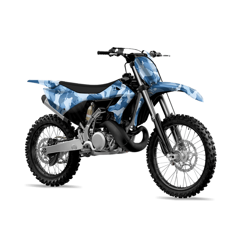 Large Ragged Cool Blue Camo Dirt Bike Vinyl Wrap