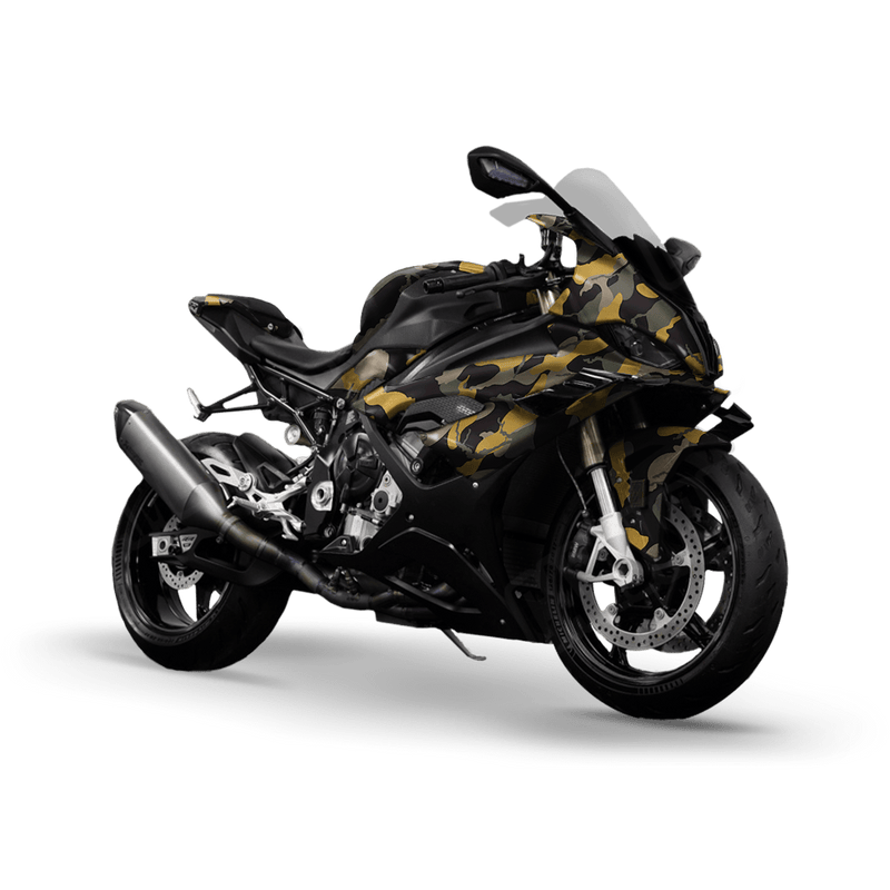 Large Ragged Militant Yellow Camo Sports Bike Vinyl Wrap