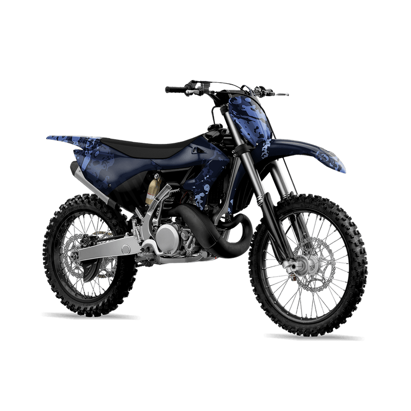 Pasted Blue Urban Night combines splattered paint textures with classic camouflage design, creating a bold and layered look. By overlapping multiple paint tones, this pattern delivers an energetic and artistic take on camo while still holding onto a rugged edge. Pasted is the perfect choice for riders who want their dirt bike to showcase creativity with a tough, camo-driven foundation.