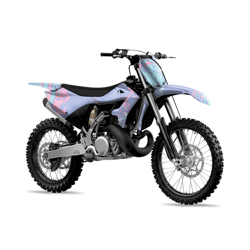 Pasted Cotton Candy combines splattered paint textures with classic camouflage design, creating a bold and layered look. By overlapping multiple paint tones, this pattern delivers an energetic and artistic take on camo while still holding onto a rugged edge. Pasted is the perfect choice for riders who want their dirt bike to showcase creativity with a tough, camo-driven foundation.
