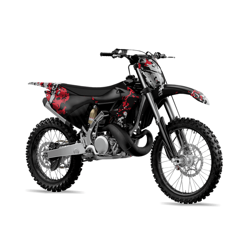 Pasted Red Tiger combines splattered paint textures with classic camouflage design, creating a bold and layered look. By overlapping multiple paint tones, this pattern delivers an energetic and artistic take on camo while still holding onto a rugged edge. Pasted is the perfect choice for riders who want their dirt bike to showcase creativity with a tough, camo-driven foundation.