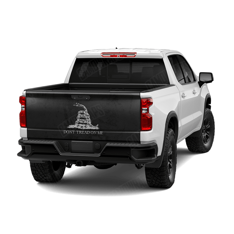 Patriotic Don't Tread on Me Grayscale Tailgate Vinyl Wrap