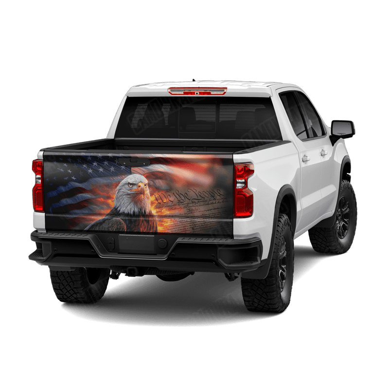 Ideal for those who take pride in American heritage and want to make a strong visual statement. Celebrate freedom and power with the Patriotic Eagle Tailgate Vinyl Wrap.