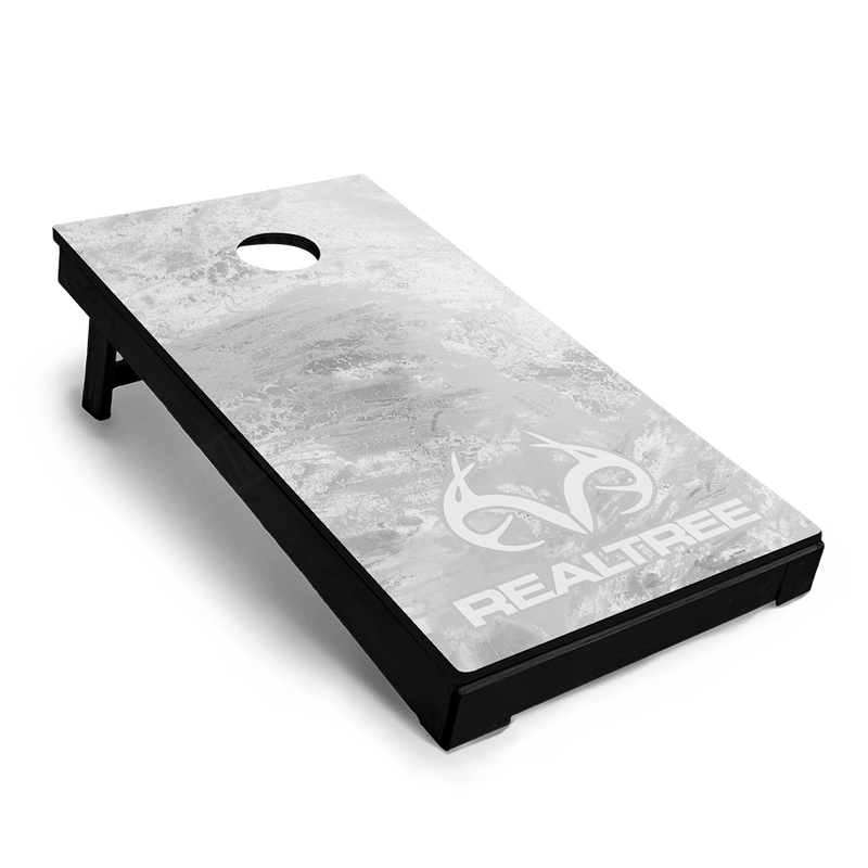 Take your cornhole game to the next level with Realtree Aspect White Out Cornhole Wraps in Realtree Aspect. Designed for the modern outdoorsman, this camo blends natural tones and shifting textures to reflect every element of your environment—air, water, terrain, and light.