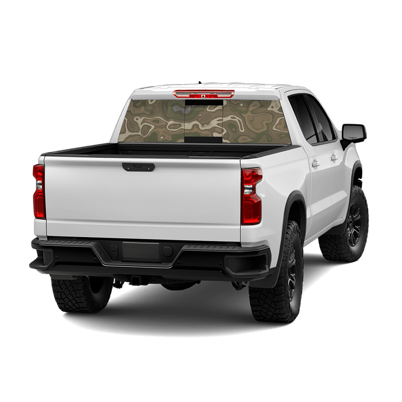 Transform your rear window with our RELV X3 Moab Camo. RELV X3 Moab Camo, designed to offer efficient field concealment and a visually appealing aesthetic, provides a distinctive and practical camouflage style for your vehicle. Printed with Avery Dennison HP MPI 2528 Perforated Window Film 50/50, this flexible calendered film is ideal for exterior-mount one-way visual panels. Graphics printed on this material are visible from the front and “invisible” from the back when mounted on windows. This perforated window film pattern provides an open area of 50%, allowing for the best possible visibility through a one-way graphic panel. This durable vinyl is crafted to withstand harsh conditions while maintaining visibility inside the vehicle, providing long-lasting protection and visual appeal.