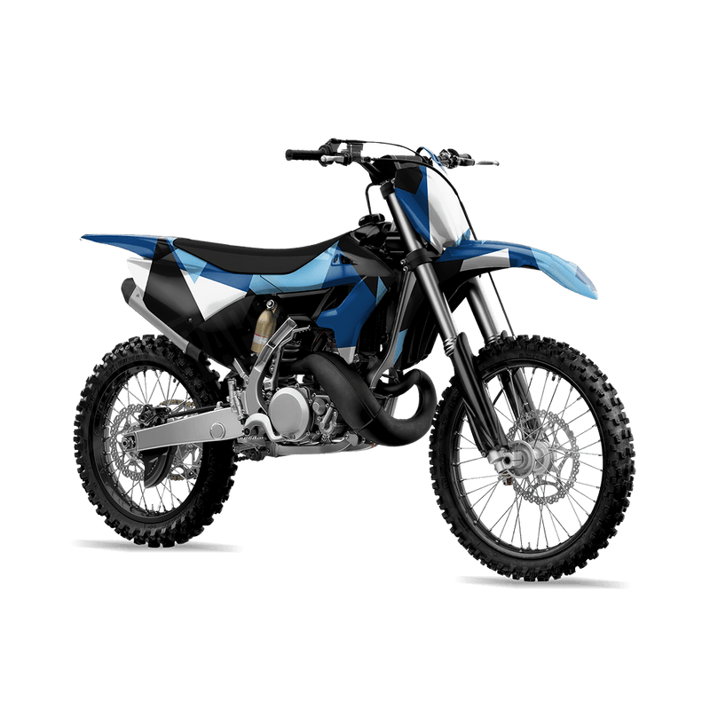 Shattered Baby Blue takes traditional camouflage and breaks it apart with sharp, angular edges for a bold retro-inspired look. With its fractured shapes and geometric feel, Shattered delivers a unique style that feels both rugged and edgy. It’s the perfect camo for riders who want their dirt bike to stand out with a design that’s aggressive yet clean.