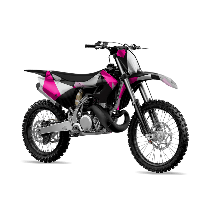 Shattered Magenta Tiger takes traditional camouflage and breaks it apart with sharp, angular edges for a bold retro-inspired look. With its fractured shapes and geometric feel, Shattered delivers a unique style that feels both rugged and edgy. It’s the perfect camo for riders who want their dirt bike to stand out with a design that’s aggressive yet clean.
