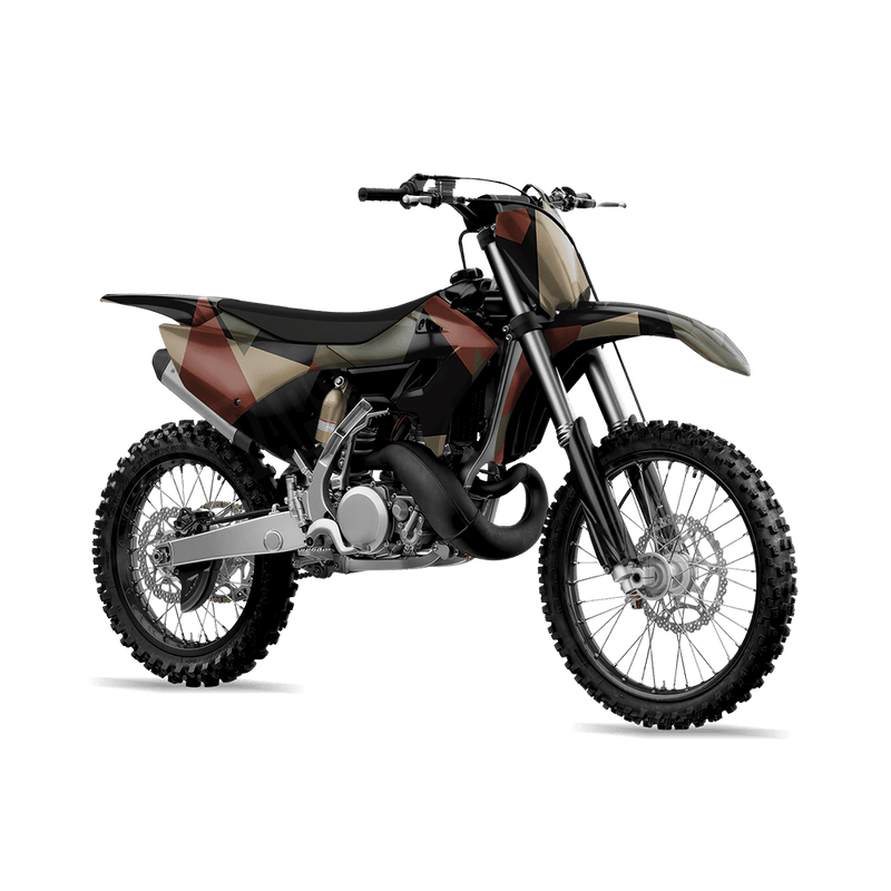 Shattered Militant Copper takes traditional camouflage and breaks it apart with sharp, angular edges for a bold retro-inspired look. With its fractured shapes and geometric feel, Shattered delivers a unique style that feels both rugged and edgy. It’s the perfect camo for riders who want their dirt bike to stand out with a design that’s aggressive yet clean.