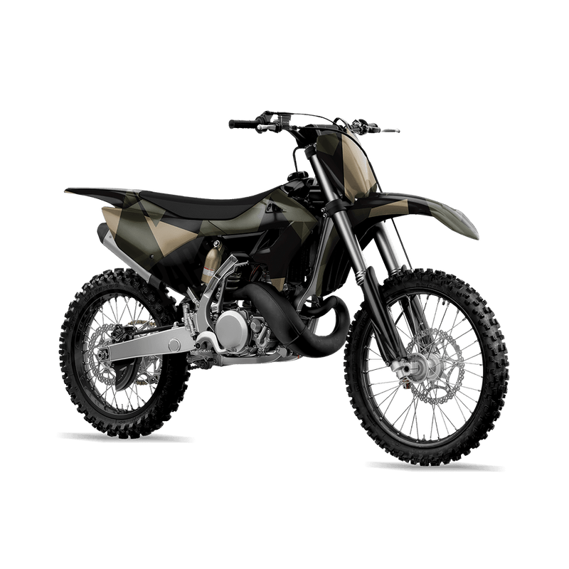 Shattered Militant Green takes traditional camouflage and breaks it apart with sharp, angular edges for a bold retro-inspired look. With its fractured shapes and geometric feel, Shattered delivers a unique style that feels both rugged and edgy. It’s the perfect camo for riders who want their dirt bike to stand out with a design that’s aggressive yet clean.