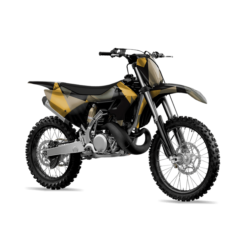 Shattered Militant Yellow takes traditional camouflage and breaks it apart with sharp, angular edges for a bold retro-inspired look. With its fractured shapes and geometric feel, Shattered delivers a unique style that feels both rugged and edgy. It’s the perfect camo for riders who want their dirt bike to stand out with a design that’s aggressive yet clean.