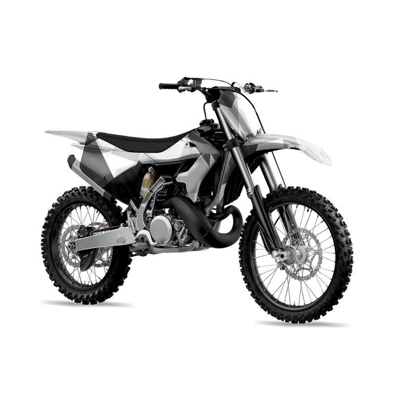 Shattered Snow takes traditional camouflage and breaks it apart with sharp, angular edges for a bold retro-inspired look. With its fractured shapes and geometric feel, Shattered delivers a unique style that feels both rugged and edgy. It’s the perfect camo for riders who want their dirt bike to stand out with a design that’s aggressive yet clean.