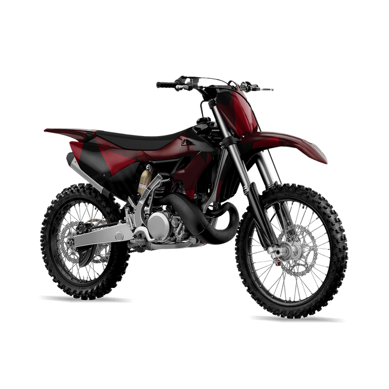 Shattered Vampire Red takes traditional camouflage and breaks it apart with sharp, angular edges for a bold retro-inspired look. With its fractured shapes and geometric feel, Shattered delivers a unique style that feels both rugged and edgy. It’s the perfect camo for riders who want their dirt bike to stand out with a design that’s aggressive yet clean.