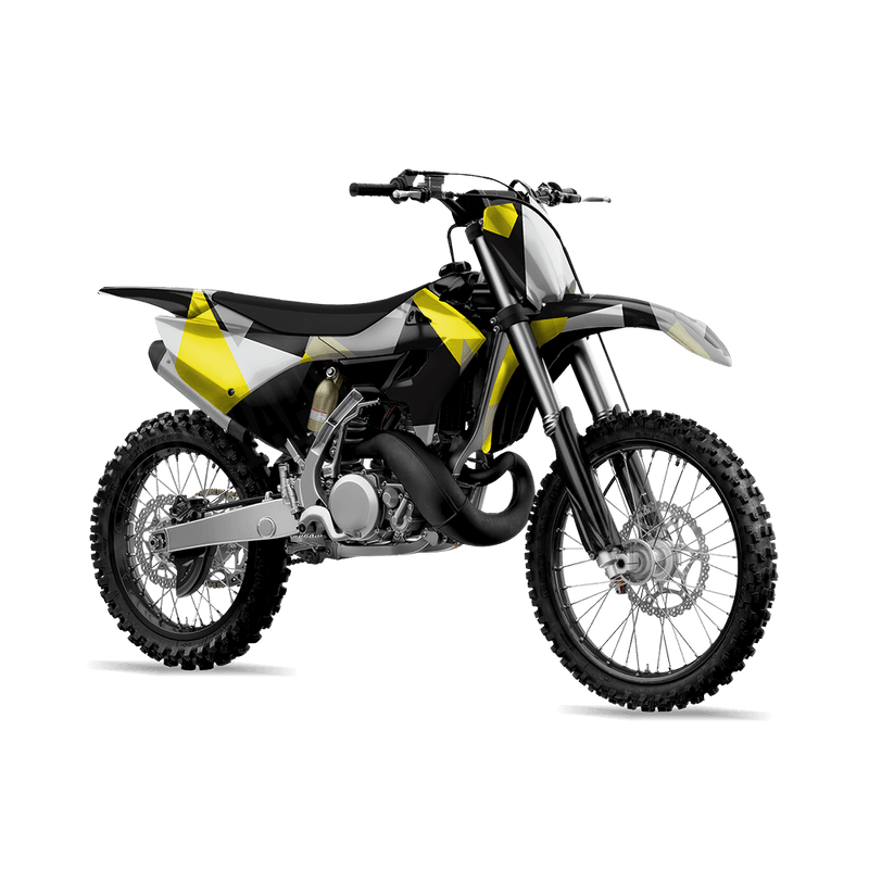 Shattered Yellow Tiger takes traditional camouflage and breaks it apart with sharp, angular edges for a bold retro-inspired look. With its fractured shapes and geometric feel, Shattered delivers a unique style that feels both rugged and edgy. It’s the perfect camo for riders who want their dirt bike to stand out with a design that’s aggressive yet clean.
