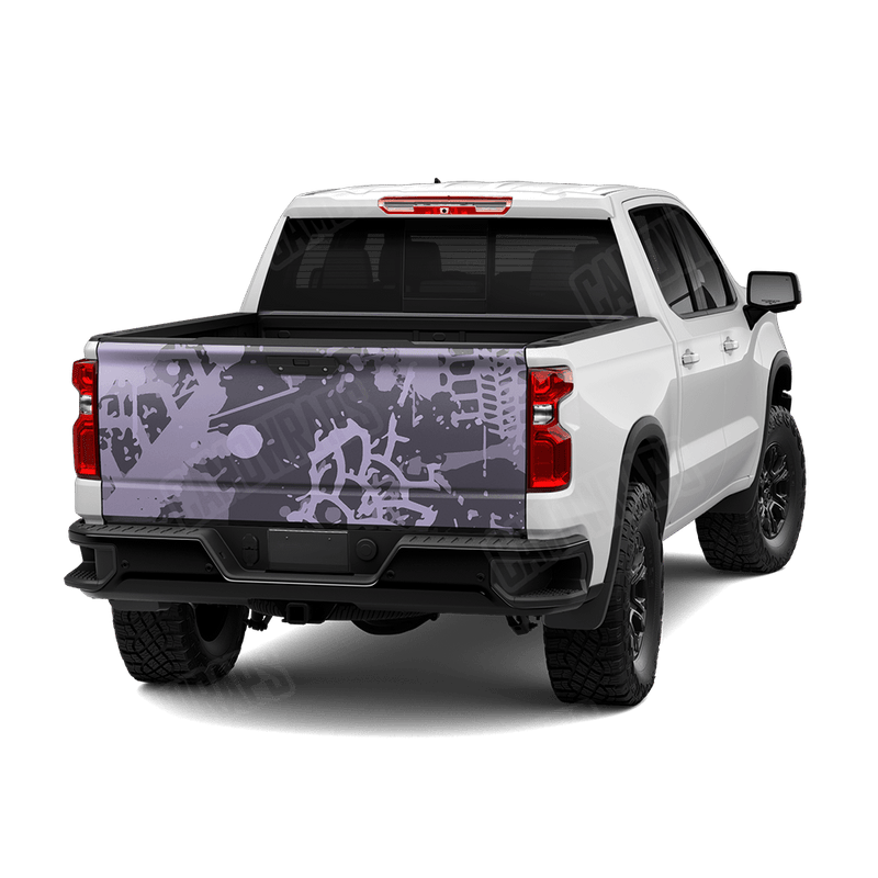 Tear up the road with Tire Splatter Lilac Tailgate Camo Wrap, a high-octane camo design from CamoWraps that fuses tire track impressions with gritty paint splatter. Built for off-roaders and thrill-seekers, this design delivers raw motion and power for any compact or full-size truck.