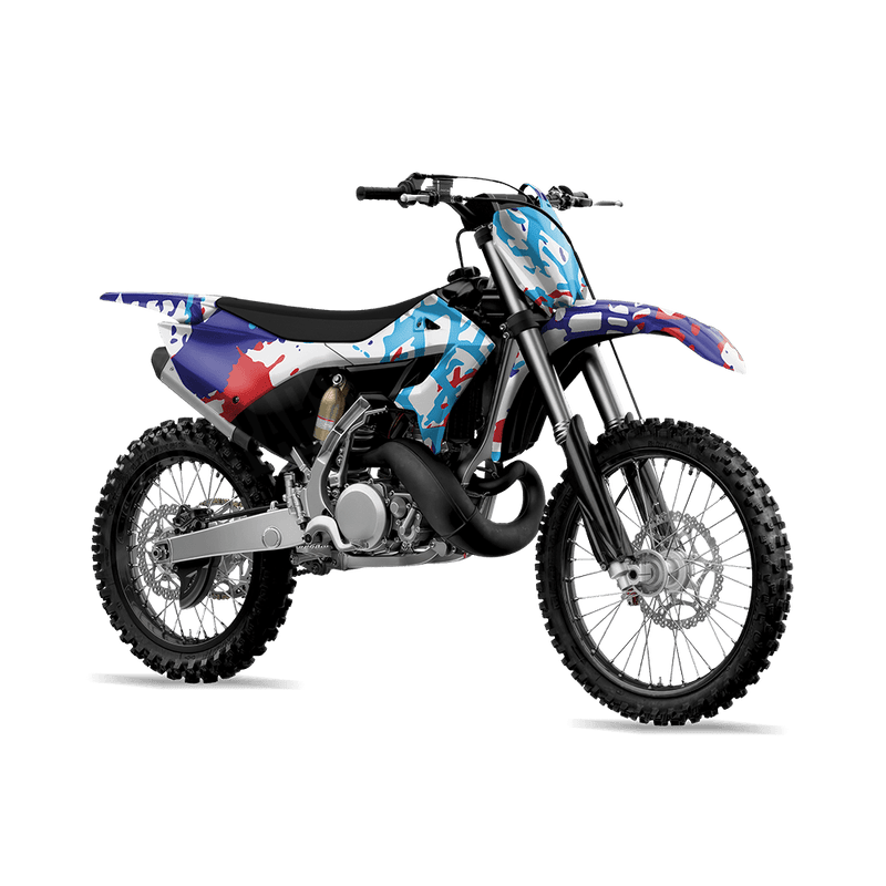 Tire Splatter M Series combines rugged tire mark patterns with bold paint splatters, giving your dirt bike a tough yet colorful look. This design feels raw and aggressive, with streaks and splashes that mimic the chaos of off-road riding. For riders who want a wrap that captures the energy of the trail while adding artistic flair, Tire Splatter delivers the perfect mix of grit and style.
