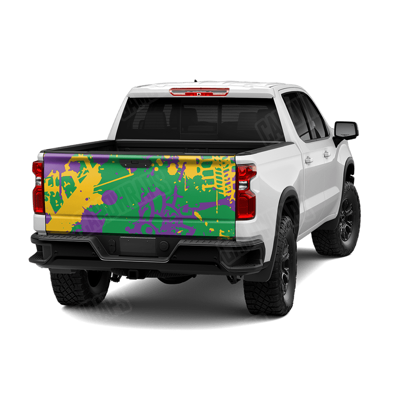 Tire Splatter Mardi Gras Camo Tailgate Vinyl Wrap