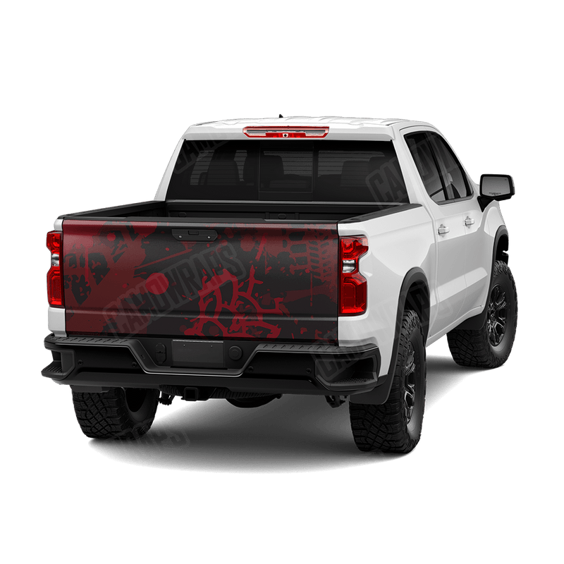 Installation is quick—just apply to any clean tailgate surface. Offered in Matte, Gloss, or Satin finishes. Tire Splatter Vampire Red Tailgate Camo Wrap brings fast-moving energy and off-road edge wherever you go.