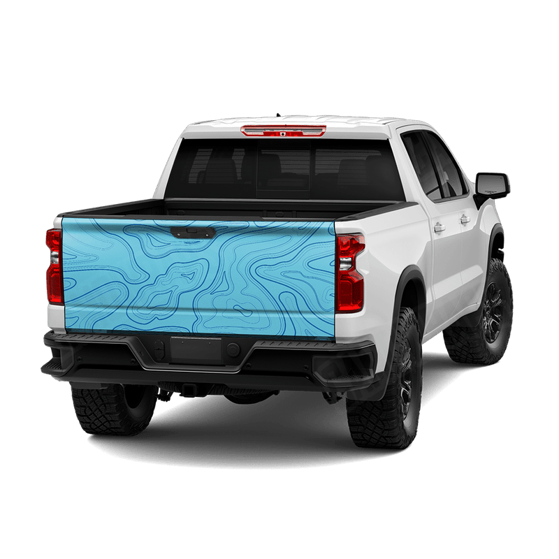 Topographic Blue Tailgate Wraps offer exceptional durability and impressive detail. Tailgate skins are designed for compact and full-size trucks and provide a custom fit and excellent coverage.