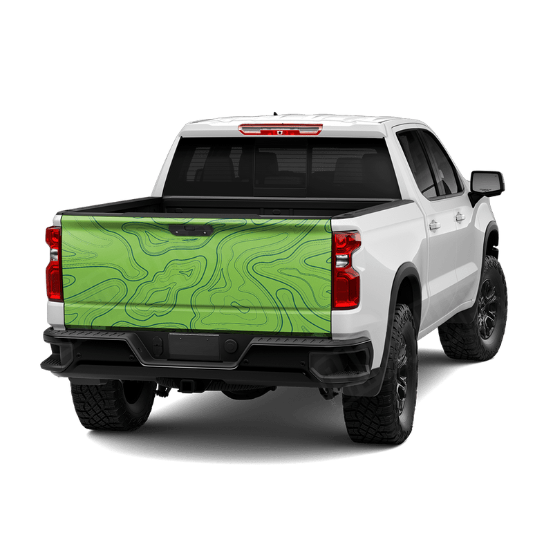 Topographic Green Tailgate Wraps offer exceptional durability and impressive detail. Tailgate skins are designed for compact and full-size trucks and provide a custom fit and excellent coverage.
