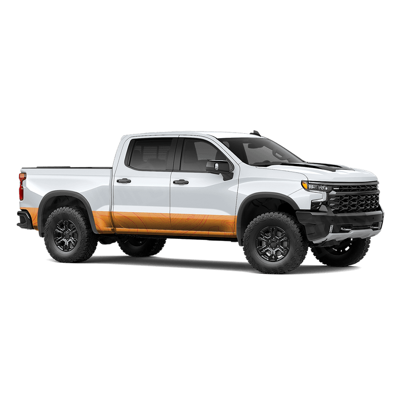 Upgrade your truck’s lower body with Topographic Orange Rocker Panel Camo Wrap, inspired by topographic maps that showcase elevation lines and terrain contours. Instead of traditional camo shapes, this design uses flowing contour lines and layered gradients to mimic the look of natural landscapes. The result is a modern, terrain-inspired aesthetic that captures the adventurous spirit of exploration while adding a sleek, rugged edge to your truck’s lower body.