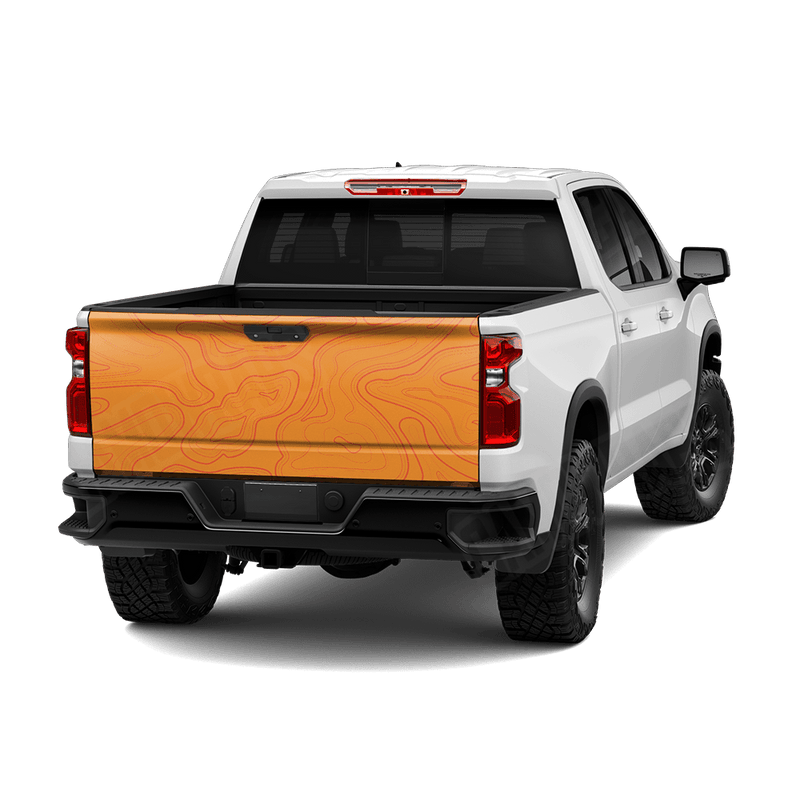 Topographic Orange Tailgate Wraps offer exceptional durability and impressive detail. Tailgate skins are designed for compact and full-size trucks and provide a custom fit and excellent coverage.