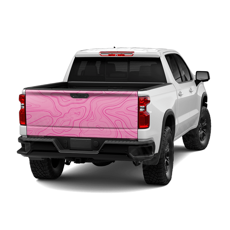 Topographic Pink Tailgate Wraps offer exceptional durability and impressive detail. Tailgate skins are designed for compact and full-size trucks and provide a custom fit and excellent coverage.
