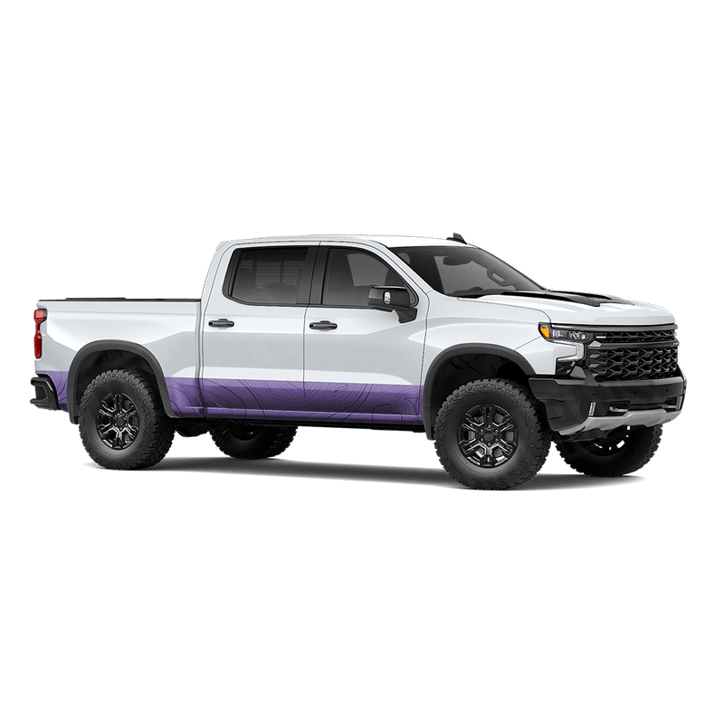 Upgrade your truck’s lower body with Topographic Purple Rocker Panel Camo Wrap, inspired by topographic maps that showcase elevation lines and terrain contours. Instead of traditional camo shapes, this design uses flowing contour lines and layered gradients to mimic the look of natural landscapes. The result is a modern, terrain-inspired aesthetic that captures the adventurous spirit of exploration while adding a sleek, rugged edge to your truck’s lower body.