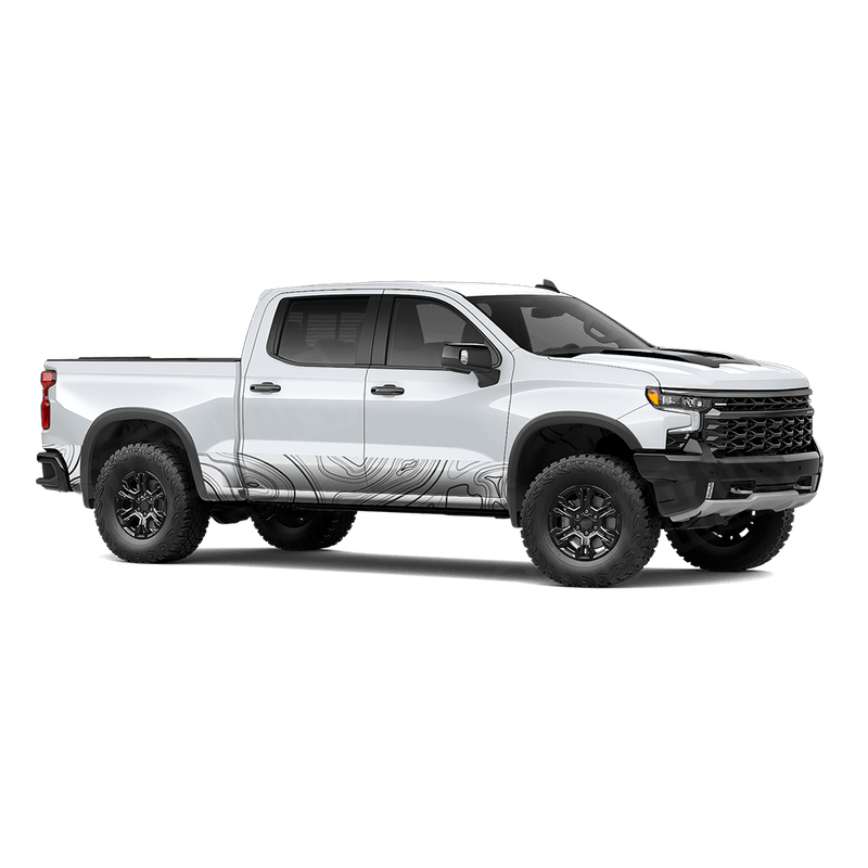 Upgrade your truck’s lower body with Topographic White Rocker Panel Camo Wrap, inspired by topographic maps that showcase elevation lines and terrain contours. Instead of traditional camo shapes, this design uses flowing contour lines and layered gradients to mimic the look of natural landscapes. The result is a modern, terrain-inspired aesthetic that captures the adventurous spirit of exploration while adding a sleek, rugged edge to your truck’s lower body.