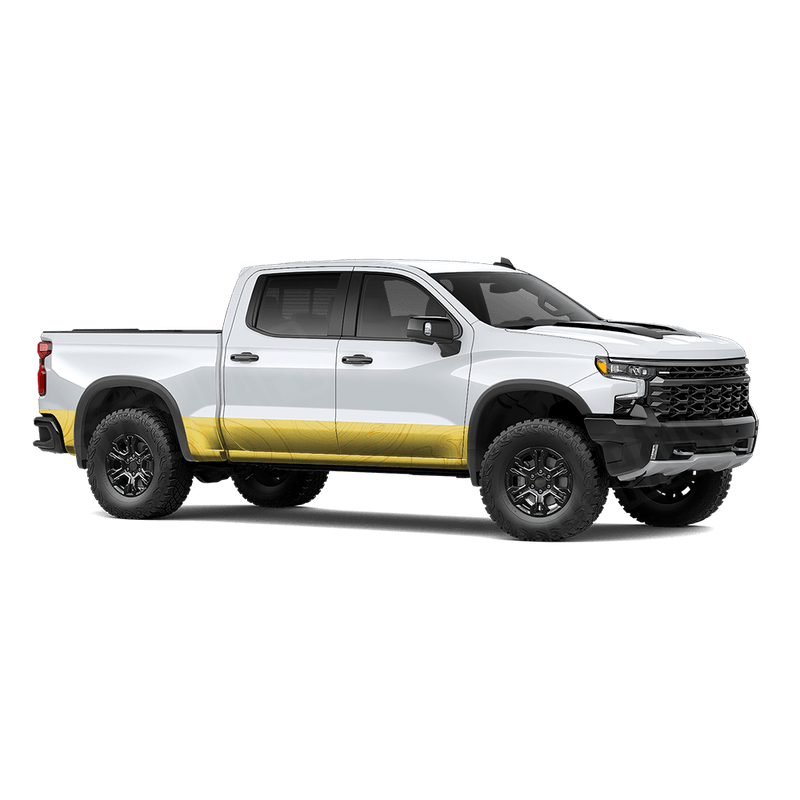 Upgrade your truck’s lower body with Topographic Yellow Rocker Panel Camo Wrap, inspired by topographic maps that showcase elevation lines and terrain contours. Instead of traditional camo shapes, this design uses flowing contour lines and layered gradients to mimic the look of natural landscapes. The result is a modern, terrain-inspired aesthetic that captures the adventurous spirit of exploration while adding a sleek, rugged edge to your truck’s lower body.