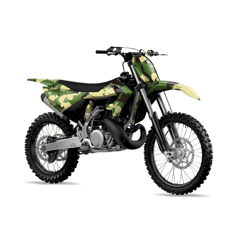 Treetop Jungle builds on the foundation of classic military camouflage but with refined details that give it a modern edge. Inspired by woodland environments, this pattern delivers a rugged outdoor look that feels both familiar and fresh. Treetop is perfect for riders who want a dirt bike wrap that stays true to traditional camo roots while adding a sharper, updated twist.