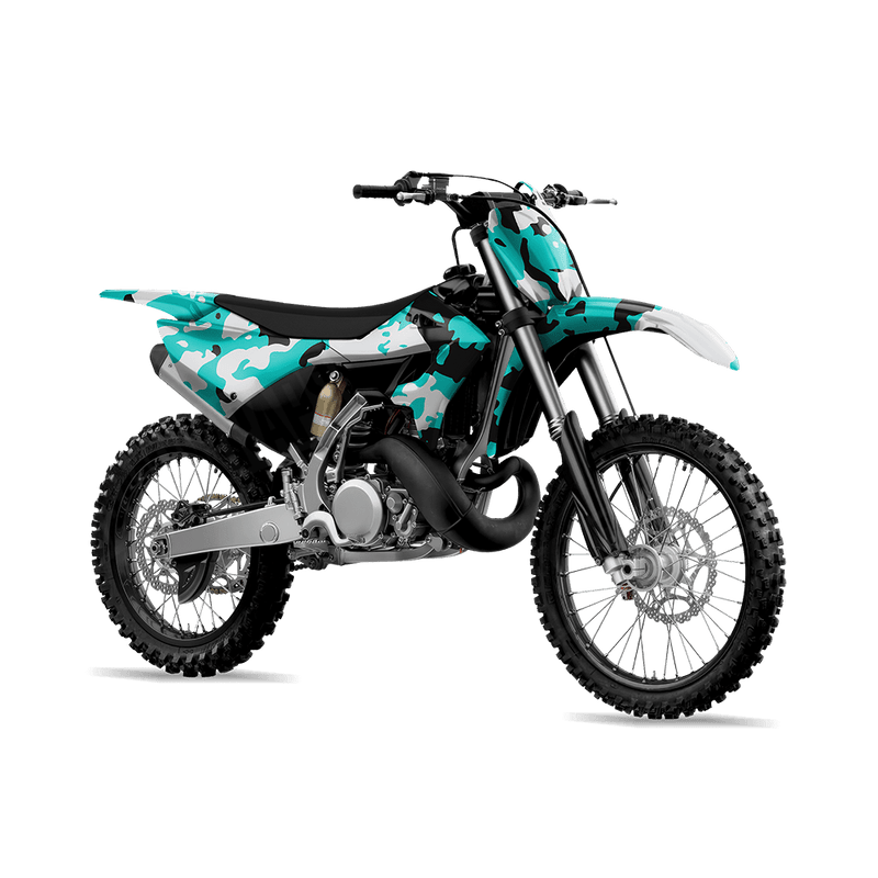 Treetop Tiffany Blue Tiger Camo Dirt Bike Vinyl Wrap