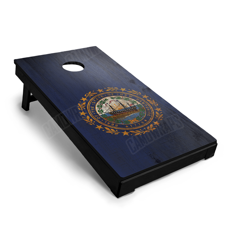 New Hampshire Distressed Flag Cornhole Boards are perfect for New Hampshire residents, outdoor lovers, and sports fans who want to add custom flair and lasting durability to their boards. Whether you're playing at a tailgate, backyard BBQ, or family gathering, these boards offer smooth gameplay and professional quality.
