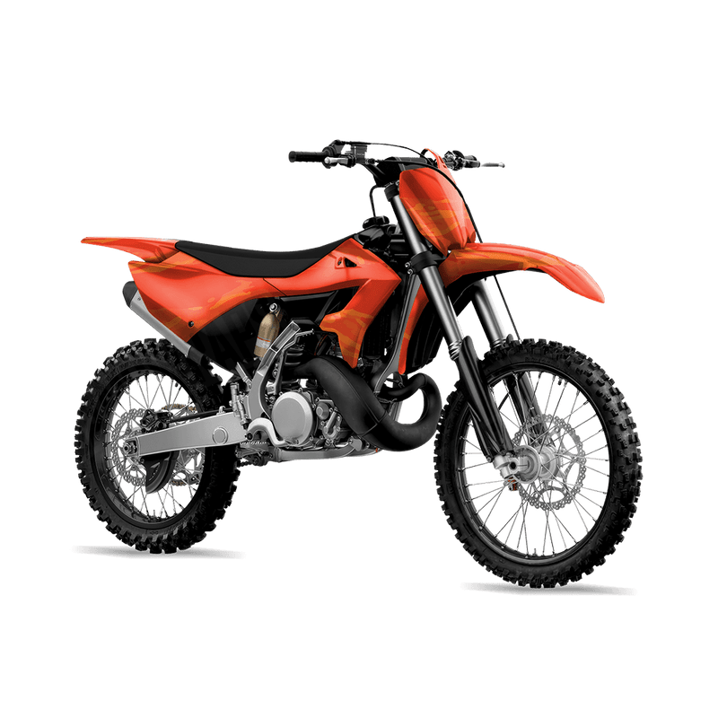 Vietnam Tiger Stripe Elite Orange Dirt Bike Wrap includes a 47in x 72in sheet, or an option for a 53in x 72in sheet designed for low surface energy wraps—ideal for bikes with trickier plastics or textured panels. This specialized material ensures strong adhesion while still allowing easy repositioning during installation. The vinyl is engineered to handle the toughest conditions, from mud and dirt to rain and sun, so your design holds up ride after ride.