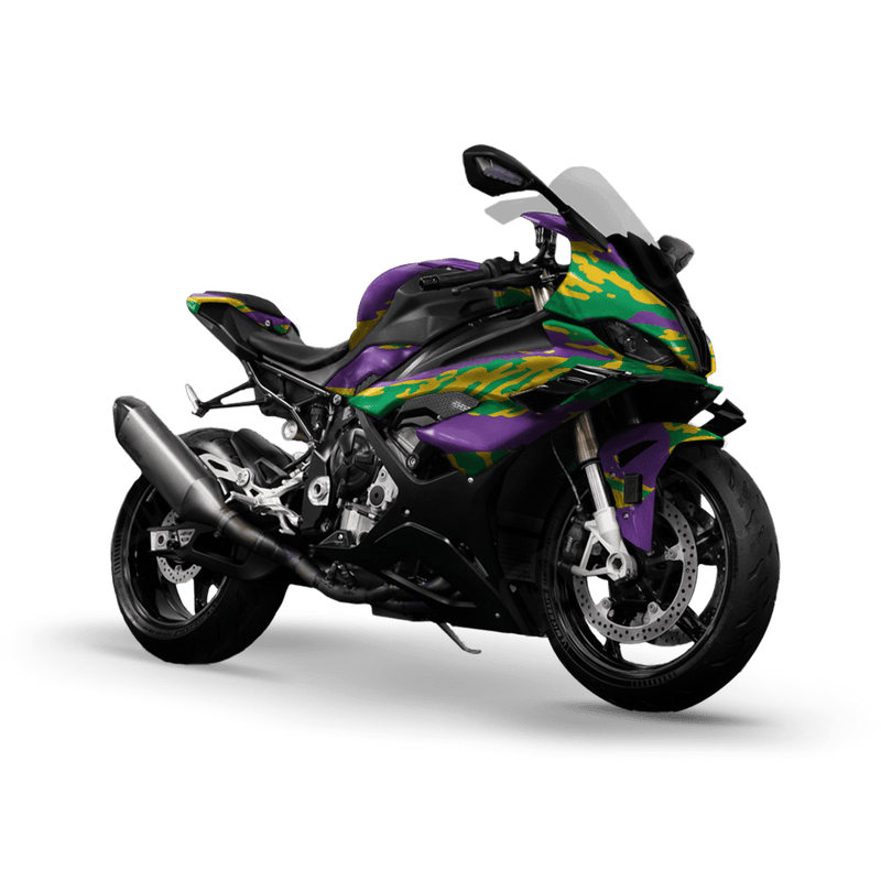 Wrapping your sports bike with Vietnam Tiger Stripe Mardi Gras is more than just a style upgrade—it’s a performance-minded choice. Our vinyl stands up to harsh weather, heat, and road wear, ensuring long-lasting protection while giving your bike a custom edge. Whether you want a matte, gloss, or satin finish, this wrap delivers a flawless installation and bold aesthetics that separate your ride from the rest.