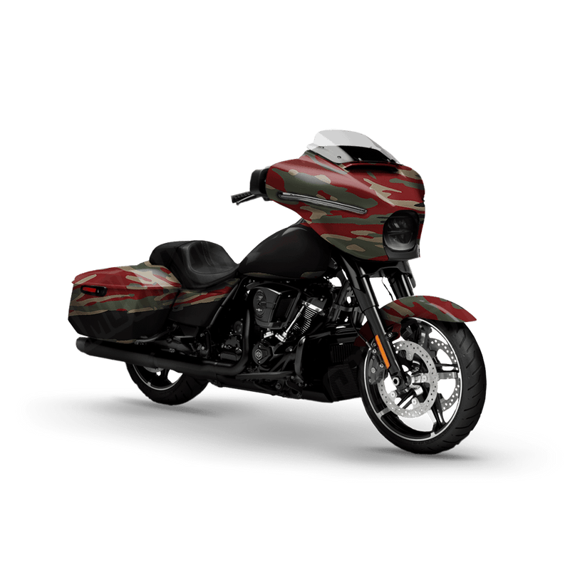 Designed to withstand the elements and change up your ride’s appearance, Vietnam Tiger Stripe Militant Red Motorcycle Camo Wrap combines durability, style, and attitude—everything a serious rider demands.